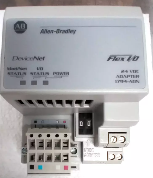 Description: The Allen-Bradley 1794-ADN is a Flex I/O communication module. This module is a DeviceNet communication adapter, used with 1794 Flex IO product Family. It connects a Flex I/O rack to the central DeviceNet scanner to allow I/O data exchange. It supports DIN rail or Panel mounting.